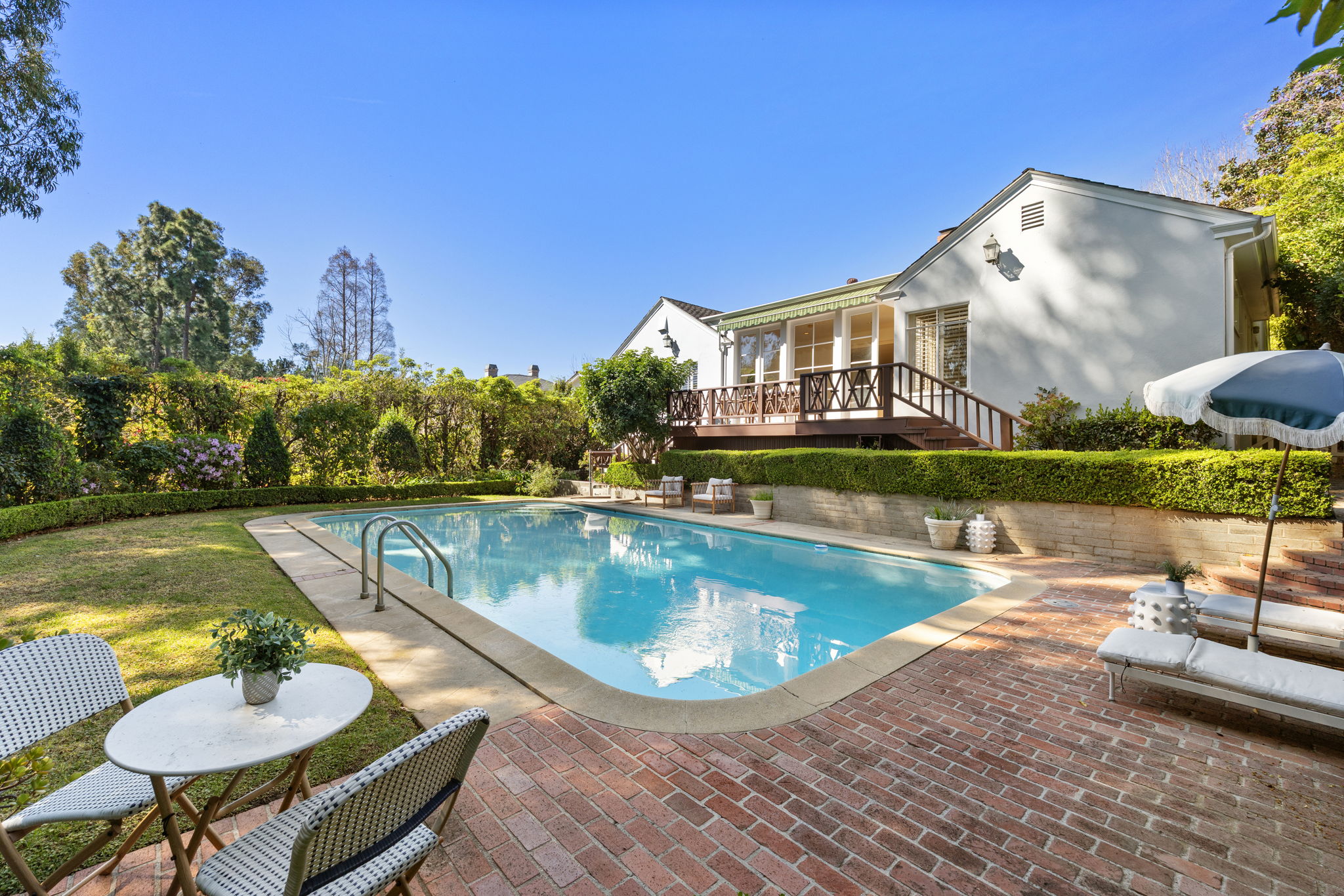 Outdoors, the expansive backyard is framed by lush landscaping and anchored by a pool, offering seclusion while being just moments from Brentwood’s premier dining, shopping, and schools. For those seeking additional scale, the property includes fully permitted plans for a new build, eliminating uncertainty and providing a clear path toward a larger vision. Whether enjoyed as it stands or thoughtfully enhanced, this offering represents land, character, and long-term potential in one of the Westside’s most enduring neighborhoods.